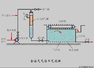 溶 氣罐產(chǎn)生溶氣水,溶氣水通過釋放器減壓釋放到待處理的水中。溶解在水中的空氣從水中釋放出來,形成20-40um的微小細(xì)泡,微氣泡同污水中的懸浮物結(jié) 合,使懸浮物比重小于水,并逐漸浮到水面形成浮渣。水面上備有刮板系統(tǒng),將浮渣刮入污泥池。清水從下部經(jīng)溢流槽進(jìn)入清水池。